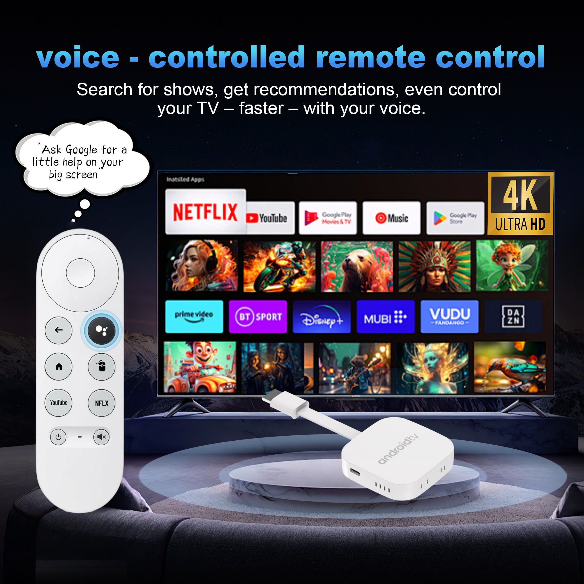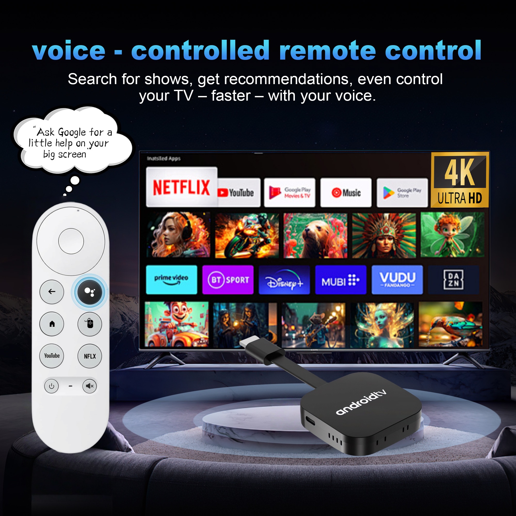 Equipped with 2GB RAM and Android 14, the device delivers smooth multitasking capabilities and extensive app support, ensuring efficient content streaming and interaction. HDMI 2.0 output supports 4K HDR video, enabling premium picture quality for advanced multimedia applications. The Bluetooth voice remote enables ergonomic remote operation and voice command facilitation, increasing user efficiency in navigation and content control. The system’s support for KODI 18.4 allows for advanced media management including network streaming and local playback, providing users with flexible entertainment options. Overall, performance optimization and streamlined user interface contribute to enhanced operational reliability and customer satisfaction in professional digital media deployments.