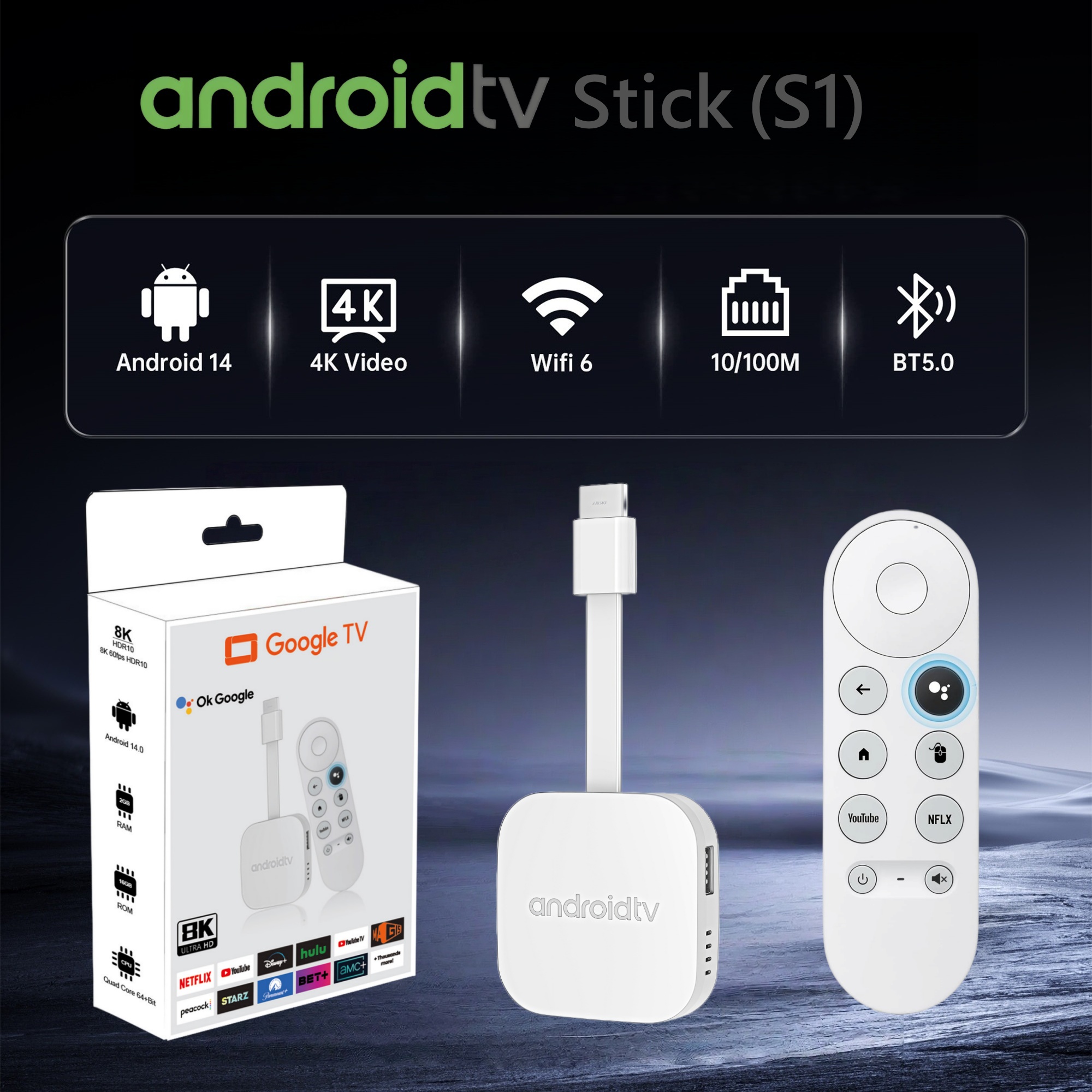 The S1 ATV Stick features advanced wireless technologies, including dual-band WiFi 6 (2.4G/5G) for faster and more stable internet connections, and Bluetooth 5.2 for seamless pairing with peripherals such as remote controls and audio devices, ensuring a reliable streaming experience.