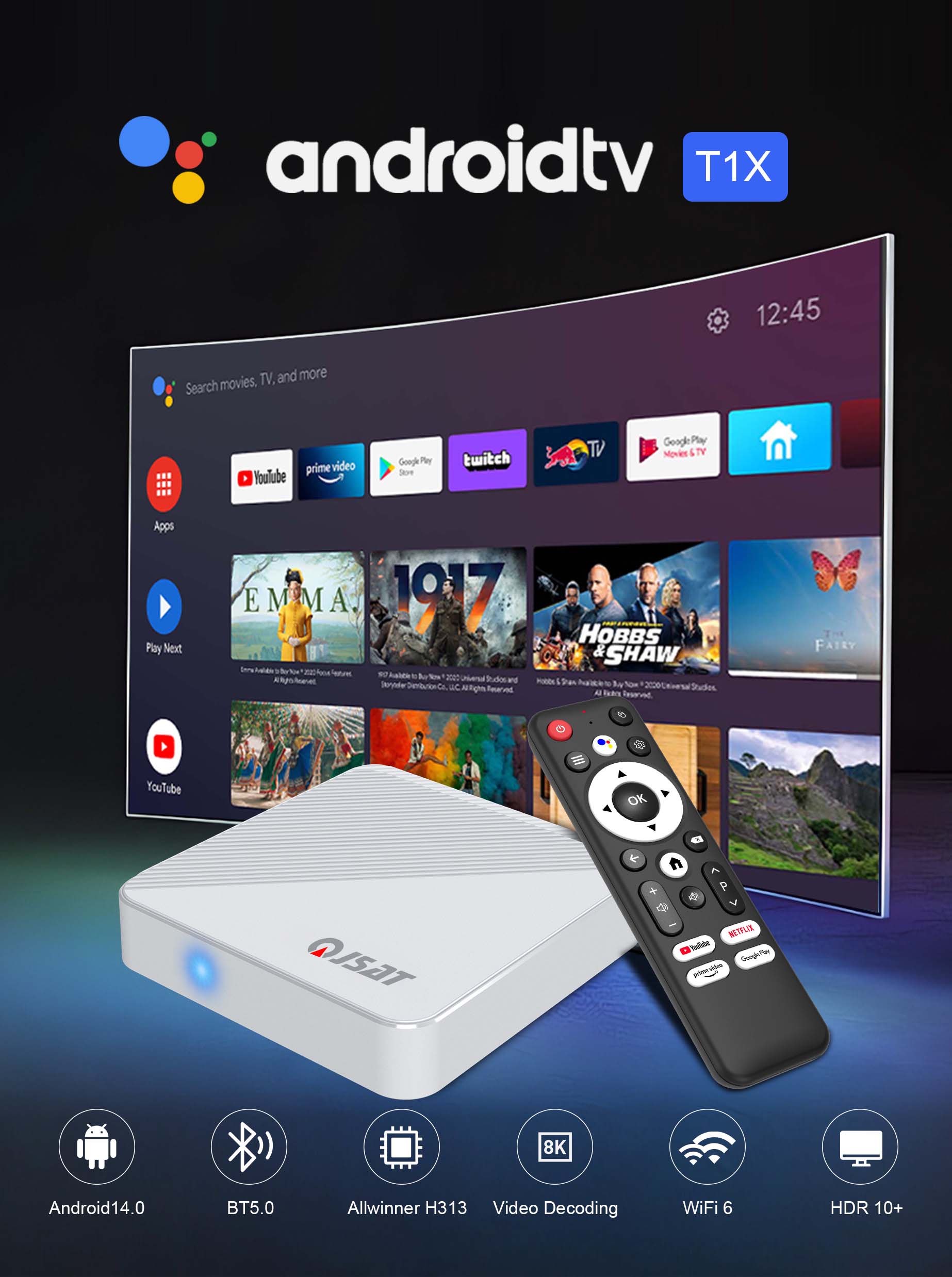 T1X Android Tv Box Allwinner H313 4K RAM 2GB ROM 8GB BT Voice Remote Set Top Box